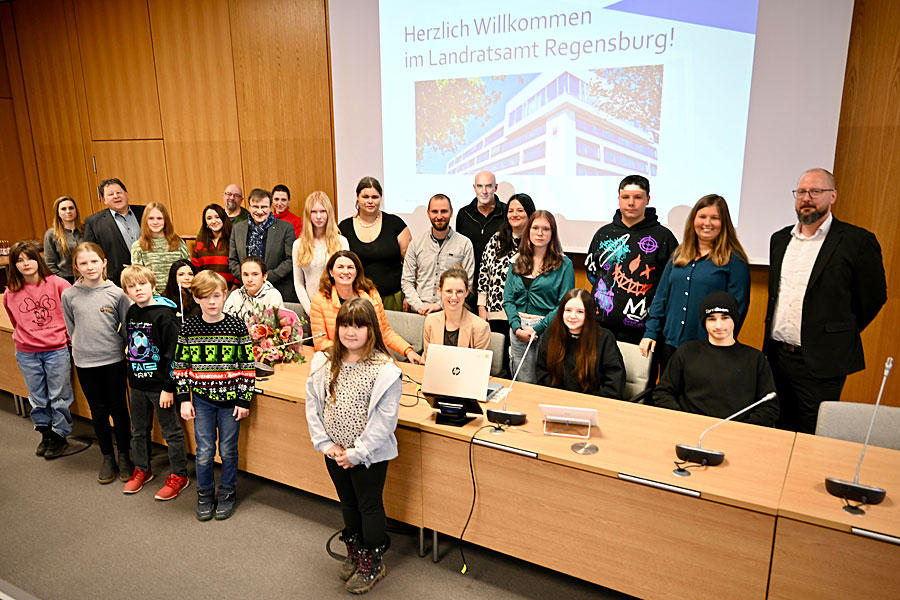 Regensburg (RL). Junge Menschen aus den Kinder- und Jugendparlamenten verschiedener therapeutischer Wohneinrichtungen von Trägern, die Mitglieder in der Arbeitsgemeinschaft katholischer Einrichtungen und Dienste der Erziehungshilfe sind, besuchten kurz vor Weihnachten das Landratsamt, um Einblicke in die Arbeit der Landkreisverwaltung zu gewinnen, sowie ihre Anliegen und Fragen direkt an die Verwaltungsspitze heranzutragen.